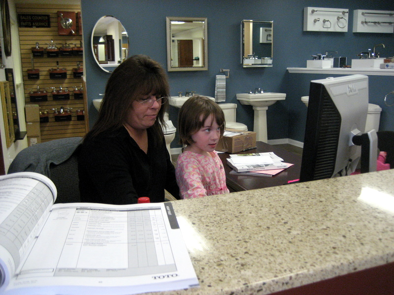 Paisley inputting her own orders at the plumbing supply house, I guess we