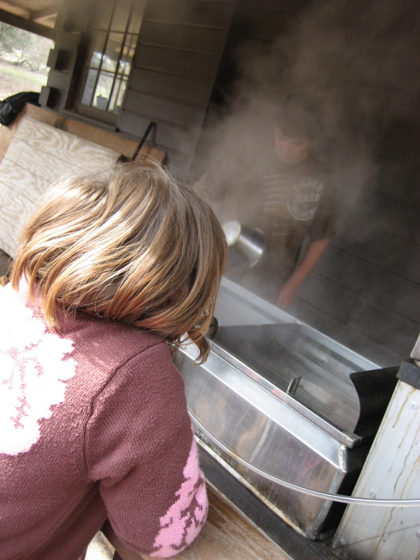 Watching maple syrup being made.